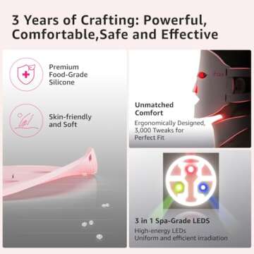 IFAE Red Light Therapy Mask for Face and Neck, 7 Colors Silicone Led Face Mask Light Therapy at Home Rechargeable & Ergonomic Design for True Anti-Aging Skincare at Home and Travel(Pink)