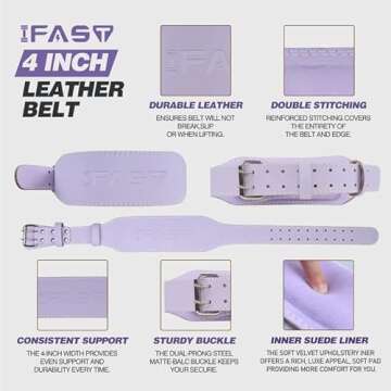 IFAST Weight Lifting Belt, Leather Weight Lifting Belt for Men and Women with 4 inch Padded Lumbar Support Belt for Weightlifting Deadlift, Power Lifting Workout & Squats Exercise (Small, Purple)