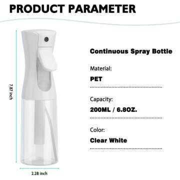 Experience unparalleled versatility with the IFDGCTK Continuous Spray Bottle, a lightweight yet robust 6.8 OZ (200 ML) solution designed for a variety of tasks. Whether you’re styling hair, hydrating plants, or assisting in skincare routines, this mister spray bottle delivers a fine, even mist that is both efficient and effective. The sleek design fits comfortably in your hand, making it ideal for everyday use in salons, gardening, or households.