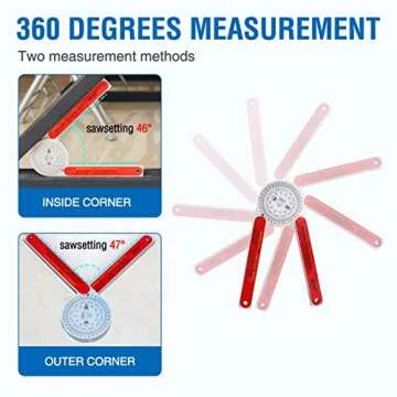 When compared to other miter saw protractors on the market, the iFJF model stands out due to its laser dial and compact design. Many competitors lack the precision and readability offered by the laser feature, while others are bulkier, making them less convenient for on-the-go use. The 360-degree measurement capability allows for more versatile applications compared to fixed-angle tools. This tool thus not only meets but exceeds the expectations for accuracy and portability required by professionals.