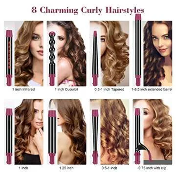 IG INGLAM Professional 8-in-1 Curling Iron Wand Set, Instant Heat Up Hair Curler with 8 Interchangeable Ceramic Barrels (0.5''-1.25''), Adjustable Temperature for All Hair Types, Rock Grey & Purple