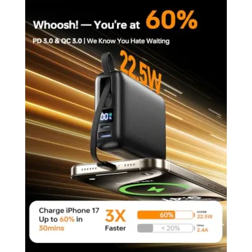 When stacked against competitors, the IGGPBB Portable Charger stands out significantly thanks to its impressive 50000mAh capacity and built-in cables, which not only streamline your charging experience by reducing the number of accessories needed but also deliver faster charging speeds with 22.5W output. Unlike many alternatives that only provide a single charging port, our charger supports up to four devices simultaneously, making it ideal for families or multiple device users.