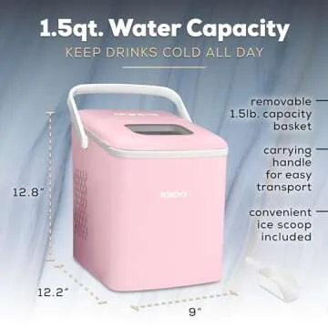 Show moreIntroducing the Igloo 26-Pound Automatic Self-Cleaning Portable Countertop Ice Maker Machine, a delightful blend of functionality and style, perfect for keeping your beverages perfectly chilled all day long! This enchanting pink ice maker is not just a feast for the eyes; it's designed for convenience and efficiency. Compact in size, it seamlessly fits into any kitchen countertop, ensuring that you have access to fresh ice whenever needed. Whether it’s a casual gathering or an extravagant party, this machine is your go-to solution for instant ice-making at home.