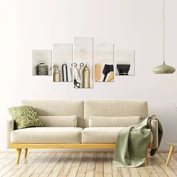 iHAPPYWALL Large 5 Pieces Salon Canvas Wall Art Vintage Barber Shop Art Prints Comb Scissors Hair Drier