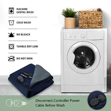 IHEALTHCOMFORT Machine Washable Electric Heated Blanket,12Volt Car Travel Blanket with Hi/M/Lo Heating 30/45/60 mins Auto-Off Timer,Warm for Truck/SUV/Van Driving(55.1"x39.4")(Navy Blue and Grey)