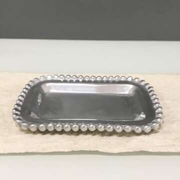 IHI Est. 1986 Rectangular Beaded Trim - 10 x 4 Inch Silver Tone Aluminum Multipurpose Serving Tray