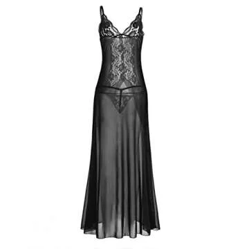 Show moreDare to allure and seduce with the iiniim Women's Sexy Sheer Lingerie Spaghetti Strap See-Through Babydoll Nightwear Dress. Crafted from a sumptuous blend of polyester, tulle, and lace, this exquisite piece exudes charm and sensuality, making it an essential addition to your lingerie collection. Designed with adjustable spaghetti shoulder straps, you can tailor the fit to your desired comfort level, ensuring that it hugs your figure just right. The elegant lace floral front coupled with a captivating mesh see-through design will undoubtedly turn heads and elevate your intimate moments to new heights. With its split middle front detail, this babydoll offers a perfect balance of taste and teasing, and it even comes with a matching G-string for a complete look. Perfect for a romantic evening or self-indulgence, this nightwear dress is a celebration of femininity and flair.