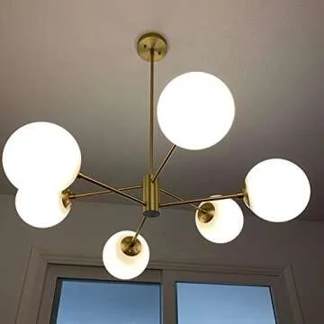Show moreIlluminate your surroundings with the elegant and functional IJ INJUICY 5-Lights Glass Chandelier Pendant. Designed to enhance the aesthetics of various spaces, this beautiful chandelier combines modern flair with classic elegance. Made with high-quality, frosted glass globes, it offers a sophisticated look that fits perfectly in settings ranging from cozy living rooms to vibrant cafes. Its overall dimensions of 28 inches in diameter and 55 inches in height make it a striking centerpiece, while the unique branch molecule magic bean design adds an artistic touch that captures attention. The chandelier is compatible with E26/E27 bulbs, ensuring you're equipped with energy-saving and eco-friendly lighting solutions that adorn your home or commercial space beautifully.