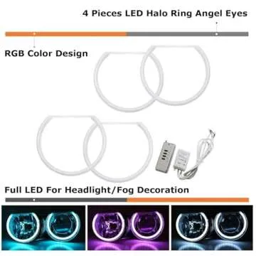 iJDMTOY 4pc Set 7-Color RGB LED Angel Eye Halo Rings w/Adjustable Setting Compatible with BMW E39 E46 3 5 7 Series Xenon Trim