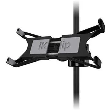 IK Multimedia iKlip Xpand Tablet Holder for mic Stands, fits iPad and Android Tablets Between 7" to 12.9" with an Adjustable 360° Swivel and Soft-Touch fit