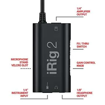IK Multimedia iRig 2 portable guitar audio interface, lightweight audio adapter for iPhone and iPad with instrument input and headphone/amplfiier outs