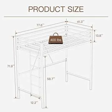 ikalido Metal Loft Bed Twin Size with Safety Guardrail and Ladder, No Box Spring Needed Space Saving Bedroom Furniture, Matte Black