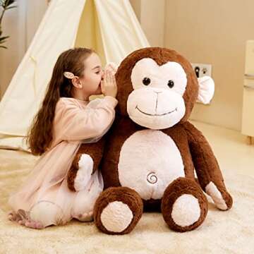 Show moreIntroducing the IKASA Giant Monkey Stuffed Animal Plush Toy, a delightful addition to any child’s toy collection! Measuring an impressive 30 inches, this oversized plush toy is crafted with love and care to ensure that every hug feels just right. Designed by IKASA, a brand renowned for its commitment to quality and creativity in creating giant stuffed animals, this plush monkey offers not only immense size but also the irresistible charm that makes it a perfect companion for children and adults alike. The soft, plush texture invites cuddles and snuggles, making it the ideal toy for charmed moments and cherished memories.