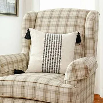IKATYARN 18 x 18 Inches Pack of 2 Boho Black and Off White Embroidery Striped Throw Pillow Cover, Soft Chenille Pillowcase with Tassels, Modern Farmhouse Decor Cushion Cover for Couch Sofa Bed