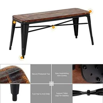 iKayaa 2 Seater Dining Bench Chair Natural Pinewood Top Metal Frame Patio Garden Bench Furniture