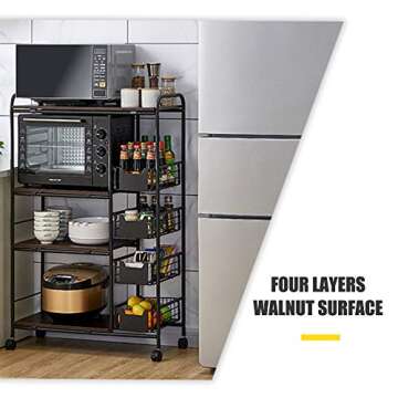 Introducing the IKAYAA Kitchen Cart, the ultimate solution for all your kitchen storage needs! Crafted with a vintage flair, this multi-layer storage stand seamlessly combines style with functionality, making it a must-have for modern households. This versatile cart features four spacious slide-out mesh baskets that provide ample room for your spices, pots, and cooking essentials. Its unique mobility, enabled by smooth-rolling wheels, allows you to effortlessly move the cart...