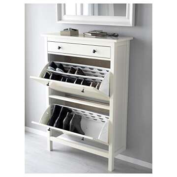 Show moreIntroducing the perfect storage solution that harmonizes functionality and style, our 6-Pair Shoe Organizer is a must-have for every household! This sturdy piece of furniture from the renowned IKEA brand is designed to keep your favorite footwear neatly stored away, while ensuring that they remain easily accessible. The elegant design fits seamlessly into any room, matching beautifully with other items in the Hemnes Series. Featuring high-quality materials, this shoe organizer will stand the test of time, keeping your space clutter-free and organized.