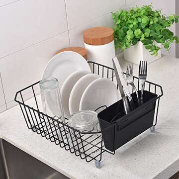 Quality IKEBANA Dish Rack - Sturdy 1-Tier Dish Drying Rack with Utensil Holder