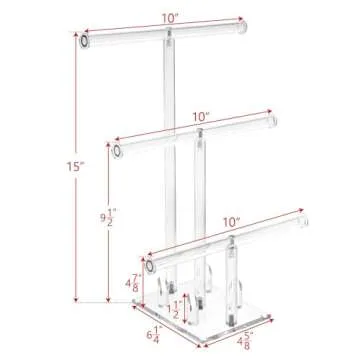 Ikee Design 3-Tier Acrylic Bracelet Necklace Bangle Jewelry Display Holder Stand with Ring Holder for Store, Tradeshow, Showcase and Home decor, Clear, 10 W x 6 1/4 D x 15 H in