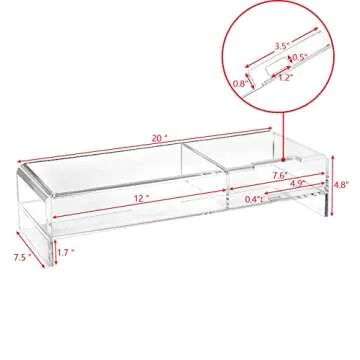 Ikee Design Large Premium 2 Tier Acrylic Monitor Stand, Monitor Riser, Computer Stand ,Laptop Stand with with Phone Holder , Keyboard Storage for Home Office Business ,20 W x 7.5 D x 4.8 H in, Clear