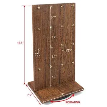 Ikee Design Wooden Rotating Two-Sided Jewelry Display Stand is the ultimate solution for jewelry and accessory enthusiasts looking to showcase their collections in a stylish yet practical way. Crafted with quality wood, this elegant display stand boasts a lovely brown finish that seamlessly complements any decor. Measuring 9 inches wide, 7.5 inches deep, and 16.5 inches high, it is perfectly sized to fit on any vanity, countertop, or display shelf without taking up too much space. The innovative...