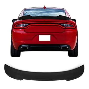 IKON MOTORSPORTS, Trunk Spoiler Compatible with 2015-2023 Dodge Charger, V2 Style Matte Black ABS Rear Tail Wing Boot Lid