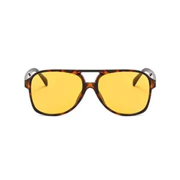 IKUVNA Vintage Aviator Sunglasses for Women Men 70s Glasses Retro Oversized Yellow Lens Shades (Leopard Yellow)