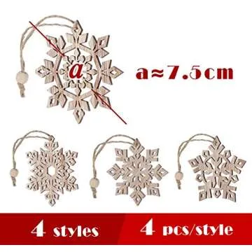 Show more Transform your holiday décor with the ilauke 16 pcs Unfinished Christmas Wood Snowflake Ornaments. This exquisite set features 16 delicate, unfinished wooden snowflakes, each showcasing unique patterns that embody the spirit of winter. Made from high-quality natural wood, these ornaments are perfect for hanging on your Christmas tree, enhancing your festive traditions while offering endless crafting opportunities. Each snowflake measures between 2.75" and 3", making them the ideal size to attractively adorn your home or to be used in creative DIY projects.