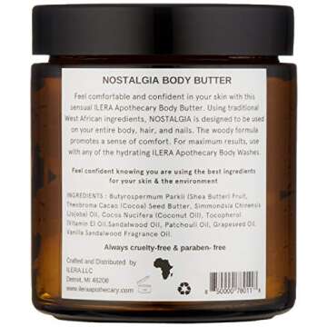 Show moreIndulge your skin with the luxurious ILERA Apothecary Moisturizing Body Butter, a heavenly blend infused with warm vanilla and sandalwood that transports you to a state of pure relaxation. Formulated with the rich goodness of natural ingredients like shea butter and cocoa butter, this nourishing treatment doesn’t just pamper your skin—it hydrates and soothes even the driest areas, leaving your skin irresistibly soft and supple. The comforting, nostalgic scent wraps you in serenity, making it an indulgent part of your daily self-care routine.