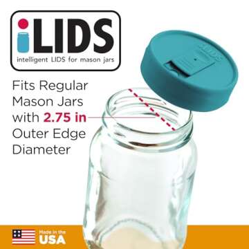 iLIDS Mason Jar Drink Lid, Regular Mouth, Aqua Blue, Pack of 2