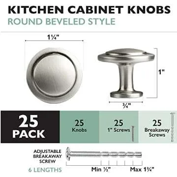Ilyapa 25 Pack Satin Nickel 1 1/14 Inch Round Kitchen Cabinet Knobs, Round Drawer Knob for Cabinets Dressers Drawers - Satin Nickel Kitchen Cabinet Hardware