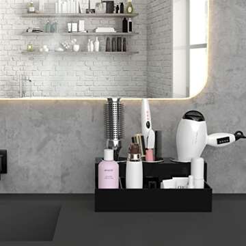 Show moreTransform your bathroom or vanity space with the ILXY Hair Tool Organizer, the ultimate solution designed for stylish organization. This multifunctional acrylic storage unit not only accommodates your essential hair tools—including hair dryers, curling irons, straighteners, and razors—but also seamlessly integrates your makeup, skincare, and jewelry. Its sleek shiny black finish adds a contemporary flair to any decor while keeping your countertop neat and tidy. Say goodbye to clutter, and hello to an elegant and efficient way to store your beauty essentials!