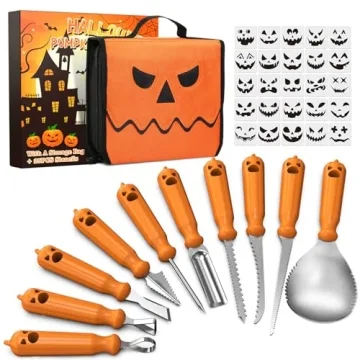 Constructed from high-quality HC stainless steel, the carving knife is built to withstand the rigors of pumpkin carving. The durable PP material handle adds to its sturdiness, making it less prone to breakage while you’re crafting stunning jack-o-lanterns. Featuring 10 professional carving tools and 25 pumpkin stencils, this set provides everything you need to create beautiful and spooky designs effortlessly.