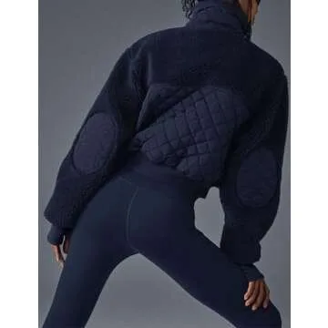IMCTAH Womens Winter Trendy Full Zipper Fleece Jackets Long Sleeve Relaxed Warm Sherpa Coats with Pockets(Navy-L)