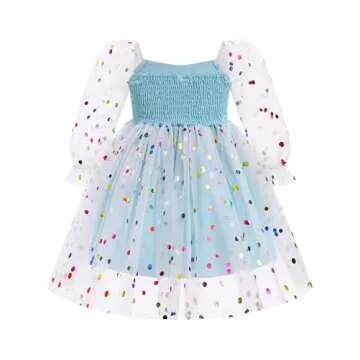 Show more Discover the enchanting IMEKIS Toddler Girl Birthday Dress, perfect for making your little one's special day unforgettable. This stunning floral confetti tulle dress is designed for various occasions, from birthday celebrations to wedding parties. Crafted with a sheer mesh long puff sleeve top and a square neckline, it boasts a delightful bodice that adds a blend of fashion and elegance to any event. The fluffy multi-layer ruffle tulle skirt features thousands of sparkling stars, ensuring your little princess will shine brightly whether it's indoors or outdoors.
