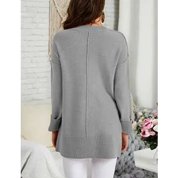 imesrun Womens Oversized Crew Neck Pullover Sweater Casual Side Split Batwing Sleeve Jumper Tops Grey