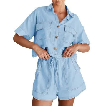 Imily Bela Women's 2 Piece Outfits Sets Summer Button Down Shirts and Shorts Pajama Sets Casual Loungewear with Pockets