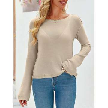 Imily Bela Womens Boat Neck Shirts Long Sleeve Lightweight Knit Pullover Sweaters Casual Sheer Blouse Tops Khaki