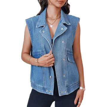 Imily Bela Womens Casual Denim Vests Sleeveless Button Down Distressed Jean Jackets with Pockets