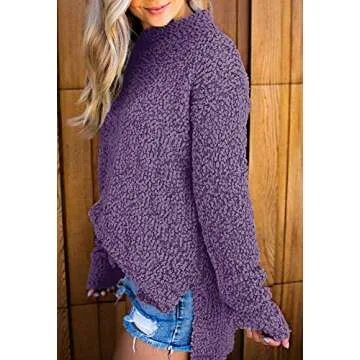 Imily Bela Womens Fuzzy Knitted Sweater Sherpa Fleece Side Slit Full Sleeve Jumper Outwears Purple