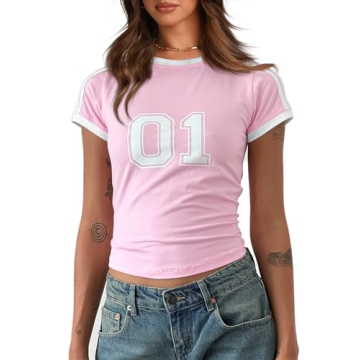 Imily Bela Womens Summer Crop Tops Y2k Baby Tees Cute Letter Print Short Sleeve Vintage T Shirt Pink