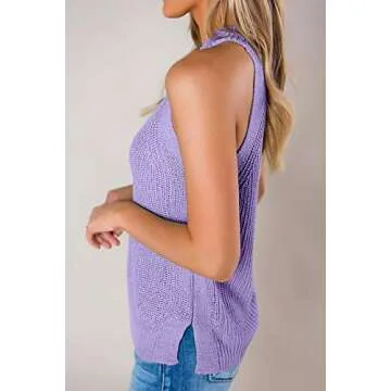 Introducing the ultimate addition to your summer wardrobe, this trendy sweater tank is not just a piece of clothing but a fashion statement. Made with a lightweight knit fabric, this tank ensures you stay comfortable while exuding a high-class style. The stunning halter neck design adds a touch of elegance, making it perfect for both casual outings and chic evening events. Notably, it features a side split that enhances your silhouette and offers a modern edge. The sleeveless...