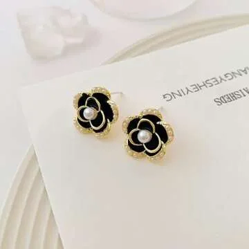 Imitation Pearl Stud Earrings,925 Sterling Silver Stud Earrings, Black Earrings for Women