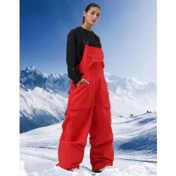 IMPHUT Womens Ski Bibs Snow Pants Super Baggy Snowboard Loose Bibs Waterproof Windproof Insulated Warm Winter,Red M