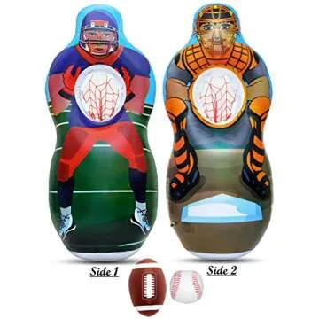 ImpiriLux Inflatable 5 Foot Tall Double Sided Football & Baseball Toss Target | Plush Mini Football and Baseball Included | Sports Game for Boys and Gils