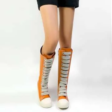 IMPREMEY Womens Knee-High School Bicycling Boots Thick Laces Comfort Platform Walking Boots with Zipper Campus Campaigns Boots