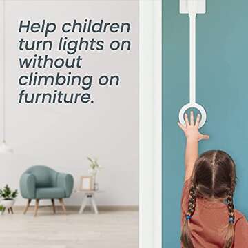 Show moreIntroducing the IMPRESA 3 Pack Light Switch Extender for Kids, your ultimate partner in fostering independence and ensuring safety for your little ones. Combining practicality with an engaging design, this light switch extender is specifically crafted to empower toddlers to turn their lights on and off with ease. No more short-statured struggles! Made by a trusted brand dedicated to child safety, it’s a must-have for every family with young children. With a cleverly designed grab loop and sturdy construction, it facilitates a stress-free environment where your kids can confidently navigate their surroundings without constant adult supervision.