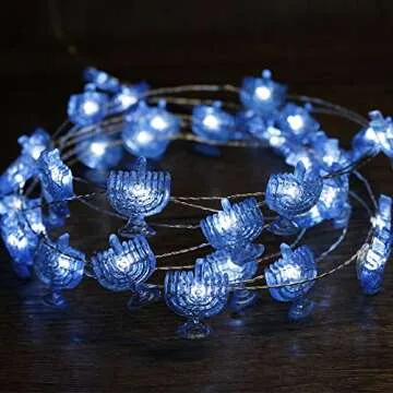 Impress Life Chanukah Decorative String Lights, 10ft 40 LED Hanukkah Menorah Twinkle Lights Battery Operated with Remote for Jews, Synagogue,Judaism Wedding Bedroom Party Candelabra Decoration