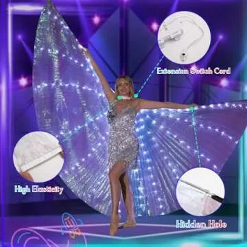 iMucci LED Wings Light Up Fairy Wings Isis Wings - Bellydance Glow Angel Wings with Telescopic Sticks Flexible Rods for Adults and Child White