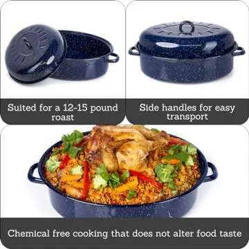 IMUSA USA 18" Traditional Vintage Style Blue Speckled Enamel on Steel Covered Oval Roaster